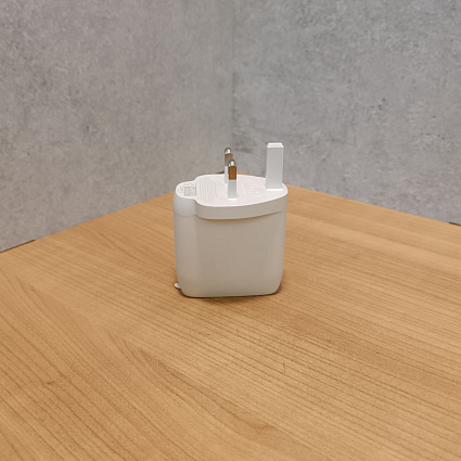 Упаковка повреждена и вскрыта, зарядка новая, в использовании не была, вилка не европейская(переходник предоставляем)