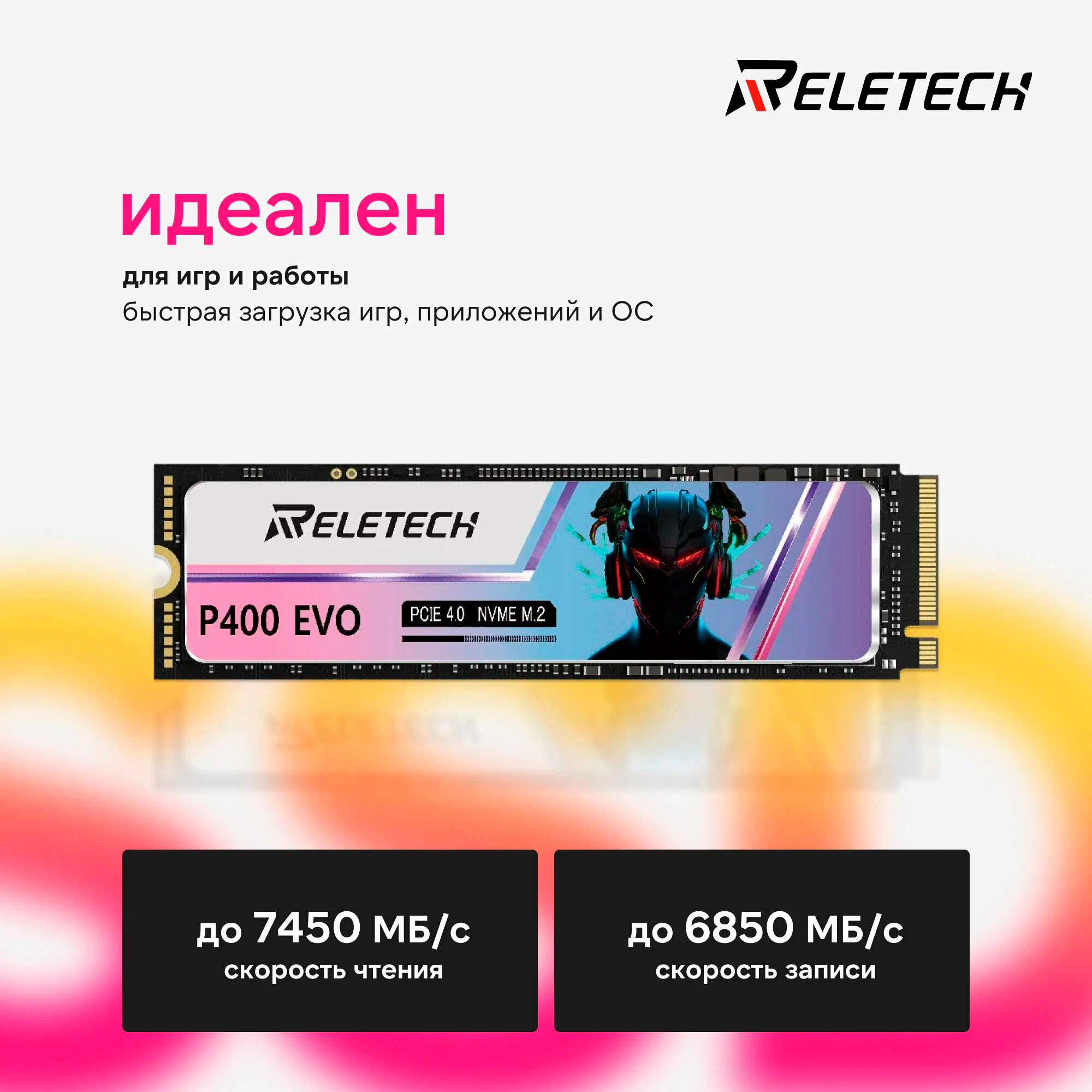 SSD Reletech P400 EVO подходит для геймеров, дизайнеров и всех, кто ценит высокую скорость и качество. Это идеальный выбор для апгрейда системы.