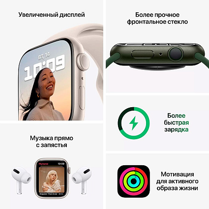 Отзывы про Умные часы Apple Watch Nike Series 7, 41 мм, корпус «сияющая звезда», спортивный ремешок Nike
