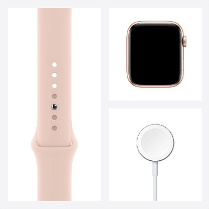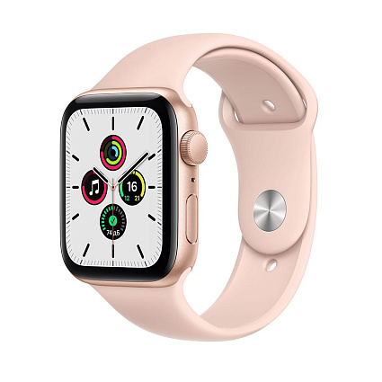 - Короткое название Умные часы Apple Watch SE, 44 мм, алюминий золотого цвета, спортивный ремешок цвета «розовый песок»