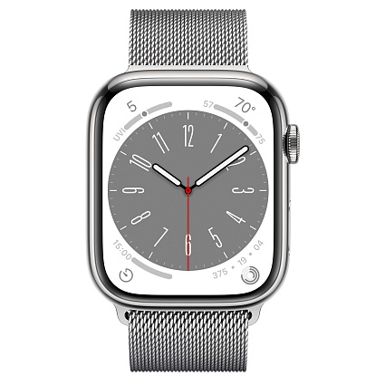 Отзывы про Умные часы Apple Watch Series 8 (GPS + Cellular) 45 mm, корпус из нержавеющей стали серебристого цвета, ремешок серебристого цвета миланского плетения
